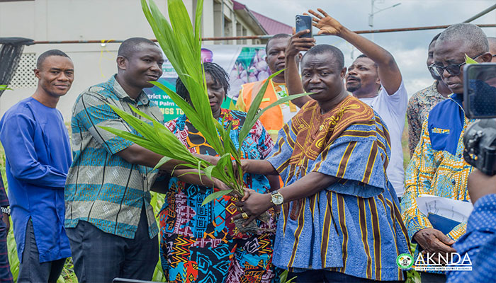 The District Chief Executive – Hon. Emmanuel Jackson Agumah – in collaboration with the District Agriculture Department has distributed oil palm and coconut seedlings to farmers within the district.